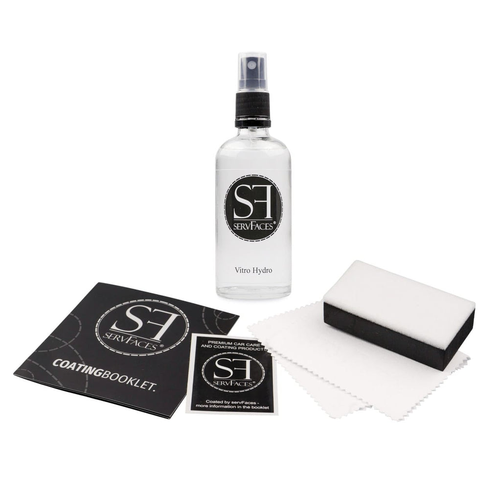Durch modernste Hochleistungspartikel bieten wir Ihnen den höchsten Versiegelungsschutz für Glasoberflächen. servFaces Vitro Hydro dockt direkt an das Glasmolekül an und verbessert die Glasoberfläche in ihrer schmutzabweisenden Wirkung erheblich. Das Produkt hat besondere Oberflächenfunktionen und ist stark wasserabweisend.